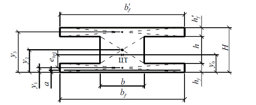 от центра тяжести напрягаемой арматуры до центра тяжести приведенного сечения