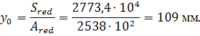от центра тяжести приведенного сечения до нижней грани