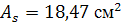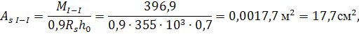 Площадь сечения арматуры в расчетных сечениях.