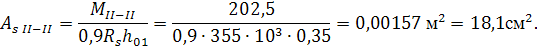 Сечение арматуры одного и другого направления на всю ширину фундамента