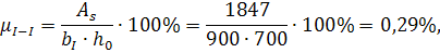 стержней 200 мм. Процент армирования расчётных сечений с учётом фактически принятой