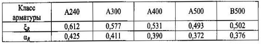 Значения граничной относительной высоты сжатой зоны бетона
