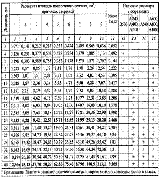 Таблица 1 - Сортамент горячекатаной арматуры (ГОСТ 5781-82)