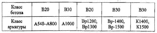 Таблица 3 - Классы тяжелого бетона, рекомендуемые для преднапряженных конструкций