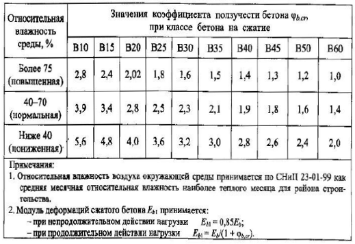 коэффициента ползучести бетона ![]()