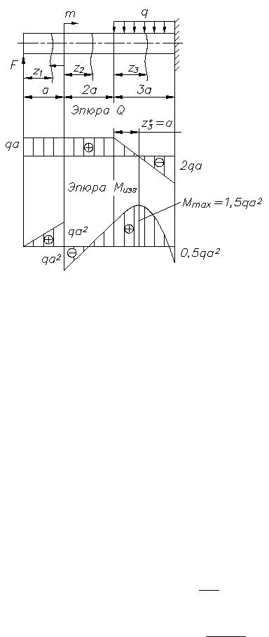 При z2 = 2a Мизг2 = F·3a – m = qa2. |