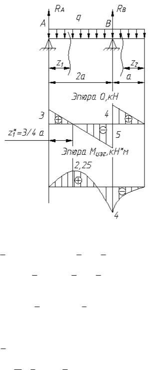 åM A = - q × 3a 32 a + RB × 2 a = 0, RB = 94 q a = 94 × 2 × 2 = 9 кН ;