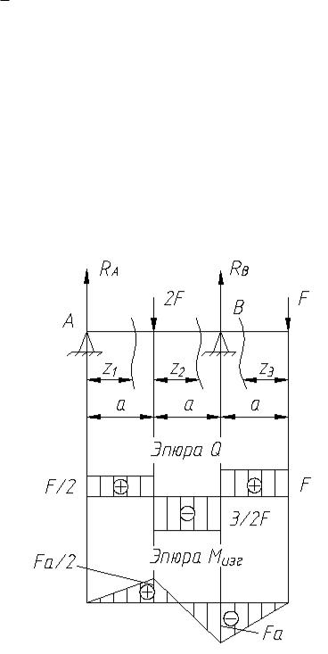 При z1 = 0 Q1 = F/2, Мизг 1 = 0; При z1 = a Q1 = F/2, Мизг 1 = Fa/2.