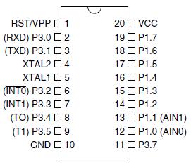 Рис. 3.2 Микросхема AT89C4051 и функции выводов