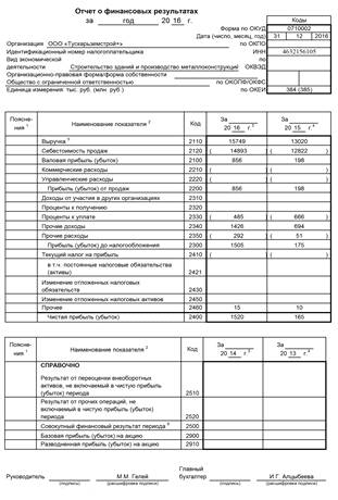 финансовых результатов деятельности ООО «Тускарьземстрой+»