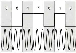 При фазовой модуляции для представления данных выполняется смещение несущего сигнала.