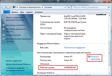Почти все готово. Необходимо проверить и задать при необходимости одну и туже рабочую группу для всех компьютеров в сети.
