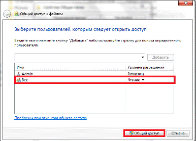 Теперь необходимо добавить необходимых пользователей и предоставить им соответствующий доступ, в данном примере полный доступ (возможность изменять и удалять файлы) на папку будет у всех.