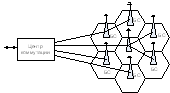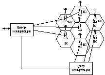 В центре каждой ячейки находится базовая станция (БС), обслуживающая все подвижные станции (ПС) в пределах своей ячейки. С центра коммутации имеется выход на ТфОП.