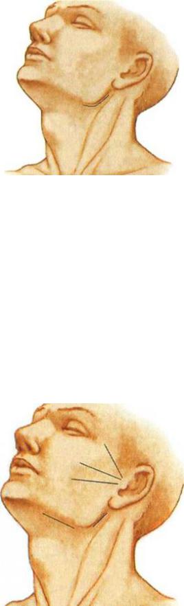 щечной области, используют разрез параллельно краю нижней челюсти и ниже на 1–1,5 см. При вскрытии глубокой флегмоны щечной области используют внутриротовой доступ путем рассечения слизистой оболочки щеки параллельно проекции выводного протока околоушной железы выше или ниже. Далее тупо проникают к месту скопления гноя. Операцию заканчивают дренированием гнойника.