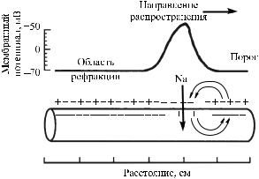 Рис. 20. Распространение возбуждения по нервному волокну