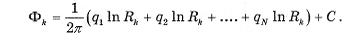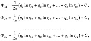 Выражение для потенциала в произвольной точке М задается формулой (7.5). Поместим точку М на забой каждой скважины и получим п уравнений: