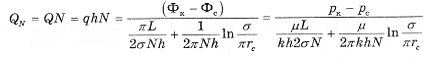 Требуется определить дебит каждой скважины и суммарный дебит N скважин в