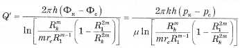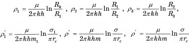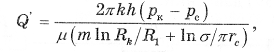 Если число скважин в батарее больше 5, то (R1/Rk)2m<<1 и формулу (2.18) можно упростить, кроме того, если заменить R1/mrc=σ/πrc, то приближённую формулу получим в виде
