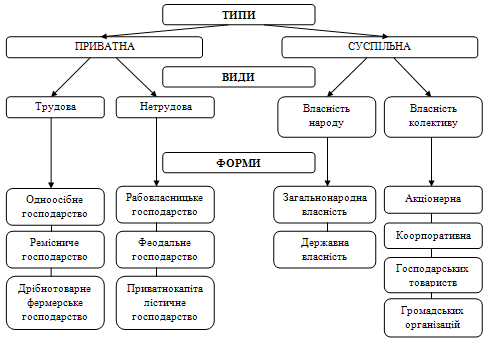 Зі зміною стадії розвитку суспільства набуває істотних змін спосіб поєднання факторів виробництва і соціально-економічне становище безпосереднього виробника матеріальних благ, послуг а отже, і форм власності.