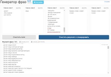 Данная программа позволяет быстрым и удобным способом собрать ключевые фразы для составления семантического ядра, определить их конкурентность и эффективность [13].
