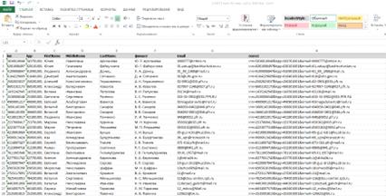 После этого, получаем базу данных в файле Excel. В файле прописываем все необходимые поля
