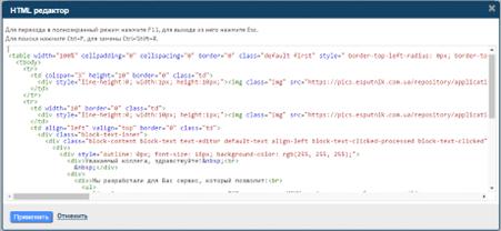 Рисунок 1.16. HTML-редактор сервиса eSputnik