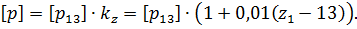 от 13, то табличное значение [p]умножим на корректирующий коэффициент:
