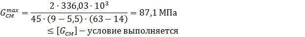 Максимальные напряжения смятия в соединении и