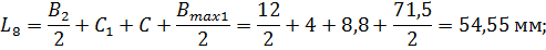 расстояние от плоскости симметрии тихоходной передачи до плоскости симметрии ближайшего подшипника: