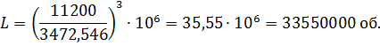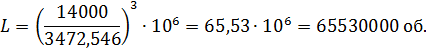 нагруженного подшипника, млн. обр.: