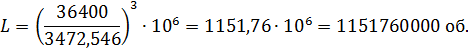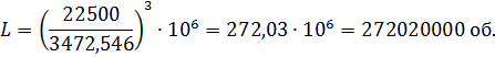 нагруженного подшипника, млн. обр.: