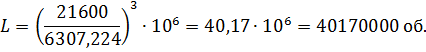 Определим расчётную долговечность максимально нагруженного подшипника, млн. обр.: