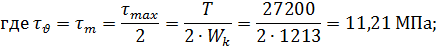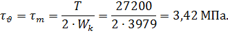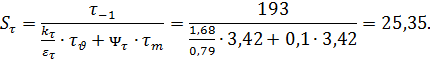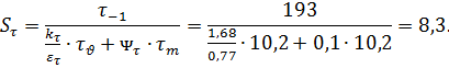 Коэффициент запаса по касательным напряжениям: