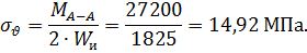 Амплитуда нормальных напряжений изгиба: