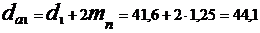 диаметры вершин зубьев: