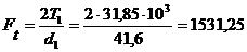 Силы, действующие в зацеплении: ([1] гл.8 формулы 8.3 и 8.4 )