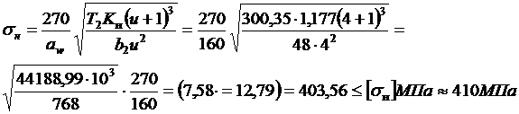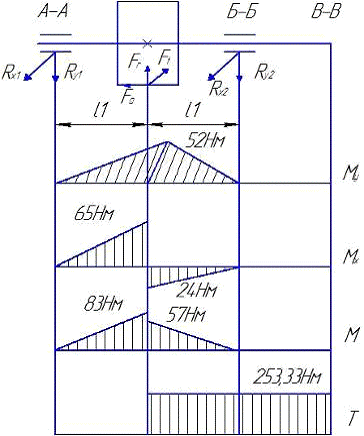 = 6мм. Момент, передаваемый шестерней T =T3 = 253,33 Н⋅м (см.