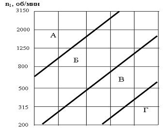 Рисунок 1 - Номограмма для выбора клиновых ремней нормального сечения