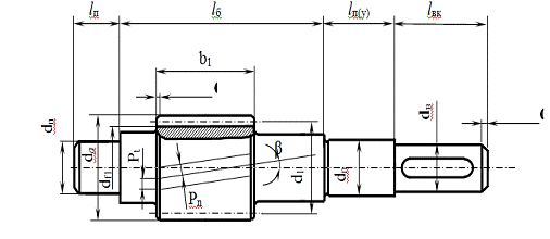 Геометрические параметры вала колеса: диаметр d, (мм) и длину 1, (мм) определяем для каждой ступени: