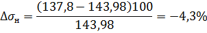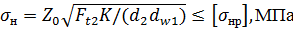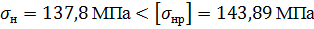 Отклонение расчетного напряжения от допускаемых контактных напряжений