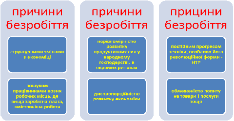 Як бачимо, причин безробіття може бути чимало. Тому економісти нині розглядають не безробіття взагалі, а його конкретні форми чи види.