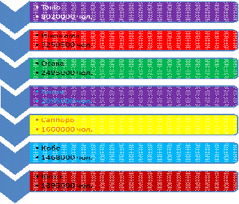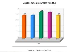 Ще близько 80 міст мають населення, що перевищує 250 000 чоловік. Середня тривалість життя (на 1998 рік): 77років-чоловіки, 82 роки-жінки. Рівень народжуваності(на 1000 чоловік) - 10, смертності - 7. Взагалі після Другої світової війни населення Японії зросло у 3 рази, країна стала першою країною в Азії, що перейшла від другого до першого типу відродження населення. Такий успіх став закономірним завдяки досягненням уряду в галузі освіти і охорони здоров’я. Взагалі Японія - країна із найнижчим показником дитячої смертності у світі. Співвідношення чоловіків і жінок у країні практично дорівнює одиниці. Останні роки у країні постає проблема старіння нації, як результату зниження народжуваності і підвищення тривалості життя японців. Темпи зростання економічно активного населення(в Японії до нього відносять осіб від 15 років, зайнятих громадською працею і безробітних) скоротилися за рахунок скорочення притоку молоді, що, в свою чергу, є наслідком зменшення народжуваності і збільшенням часу, необхідного для отримання освіти. Навідміну від інших капіталістичних країн, де високі показники безробіття серед жінок і молоді, в Японії він найвищий серед чоловіків середнього і старше середнього віку. Загострення проблеми зайнятості у Японії зумовлено прискореною трансформацією промислової структури і ростом технічної оснащеності виробництва, роботизації. Японський уряд прийняв ряд заходів: за допомогою податкових пільг стимулювались приватні компанії до створення нових робочих місць, перекваліфікації своїх співробітників, залученню робітників на неповний робочий день, залученню капіталу в райони, із надлишком робочої сили. До того ж, держава виділяла кошти на те, щоб забезпечити пріоритетне створення підприємств в районах з підвищеною концентрацією робочої сили, взяла на себе витрати по переміщенню робочої сили. Така політика уряду Японії виявилась надзвичайно ефективною і попередила високі темпи зростання безробіття серед корінних мешканців, які можна спостерігати у Європі та США. Графік динаміки безробіття у Японії виглядає наступним чином(у процентах від загальної кількості населення)