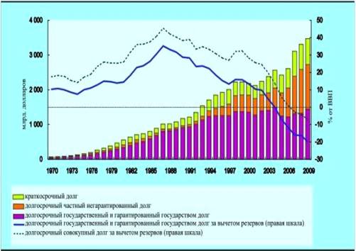 В то же самое время для обеспечения потребности государства в процентных выплатах по внешнему долгу требуется как раз прямо противоположное - увеличение экспорта, положительный торговый баланс, приток иностранной валюты для обеспечения платежей.