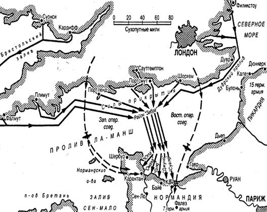 Высадка 6 июня 1944 года американо-английских экспедиционных сил в Нормандии, означавшая открытие Второго фронта в Западной Европе, явилась самой крупной десантной операцией стратегического значения в ходе Второй мировой войны. Союзники при подготовке и ее проведении решили многие проблемы: достигли внезапности высадки и четкого взаимодействия сухопутных сил, авиации, военно-морского флота и воздушно-десантных войск; осуществили быструю переброску через Ла-Манш в Нормандию большого количества войск, боевой техники и различных грузов.