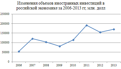 Изменение объема поступивших иностранных инвестиций в экономику России по