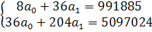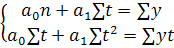 , метод наименьших квадратов дает следующую систему