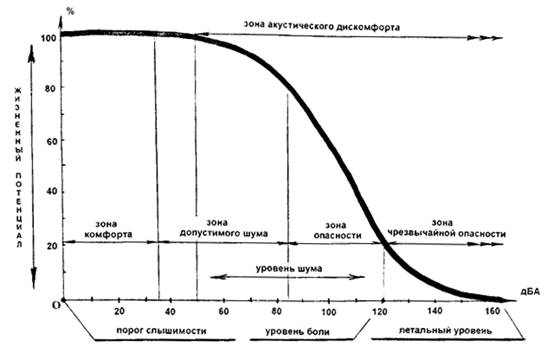 дискомфорта. С 85 дБА начинается зона опасности и включает в себя уровень боли.