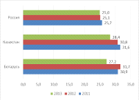 Если в России в 2011 году этот показатель был равен 25,7%, то в 2013 уже