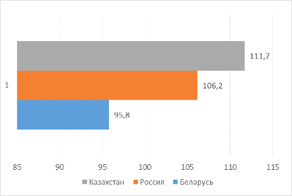 Рост промышленного производства в 2013 году вырос по сравнению с 2012 годом только в Казахстане на 2,3%. Данный показатель составил -4,9% и -4,7% в Беларуси и России соответственно [23].